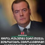 “დროა, უარი ვთქვათ ტოლერანტულ დამოკიდებულებაზე ჩვენი მეზობლების სამხედრო-ეკონომიკურ ევროკავშირში გაწევრიანების მიმართ. მათ შორის, „ქვეყანა 404-ის“ [უკრაინა] მიმართაც“ – წერს რუსეთის უშიშროების საბჭოს თავმჯდომარის მოადგილე დიმიტრი მედვედევი პლატფორმა MAX-ზე