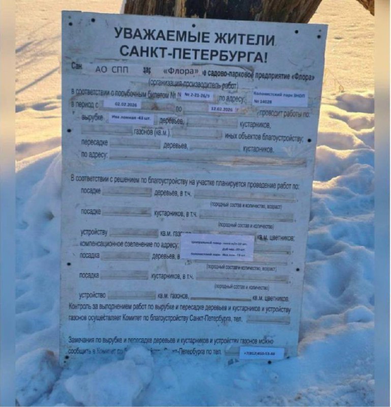 Детали. Согласно щиту, деревья должны вырубить со 2 по 12 февраля. Вместо них собираются высадить 13 новых саженцев. Барышников сообщил, что связался с главой района и Александр Якушев согласился, что деревья нужно сохранять. Также депутат рассказал, что провел переговоры с директором садово-паркового предприятия «Флора».
